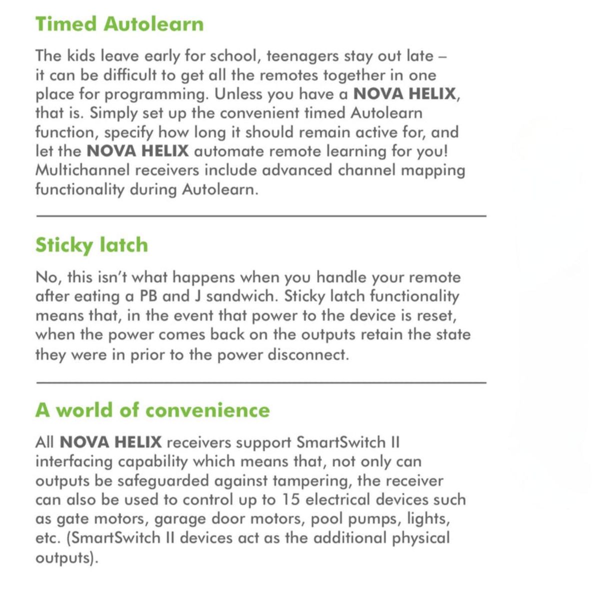 - Receiver Support: Self-learning receivers (1–4 channels)