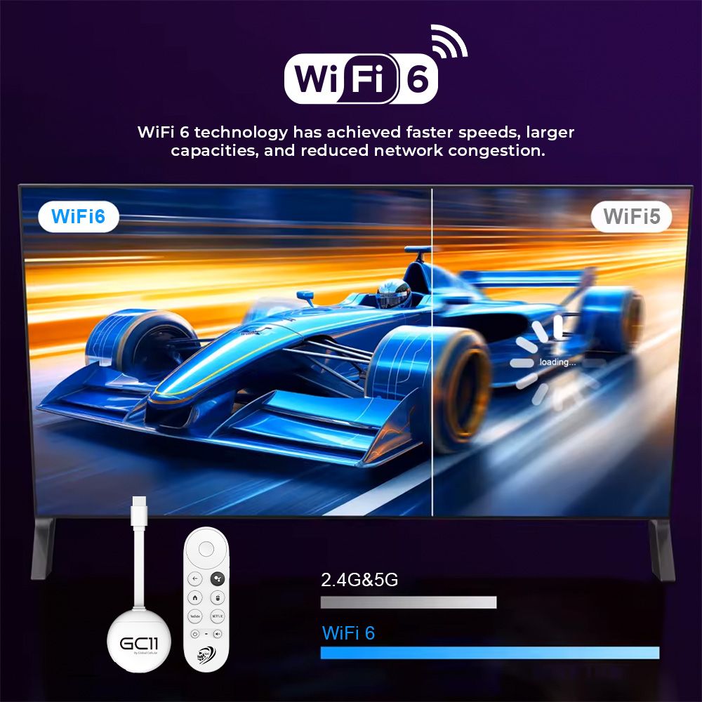 The Global Cellular GC11 combines WiFi 6 speed, 4K streaming, and smart voice control in a compact design—making it one of the best affordable Android TV sticks in South Africa.