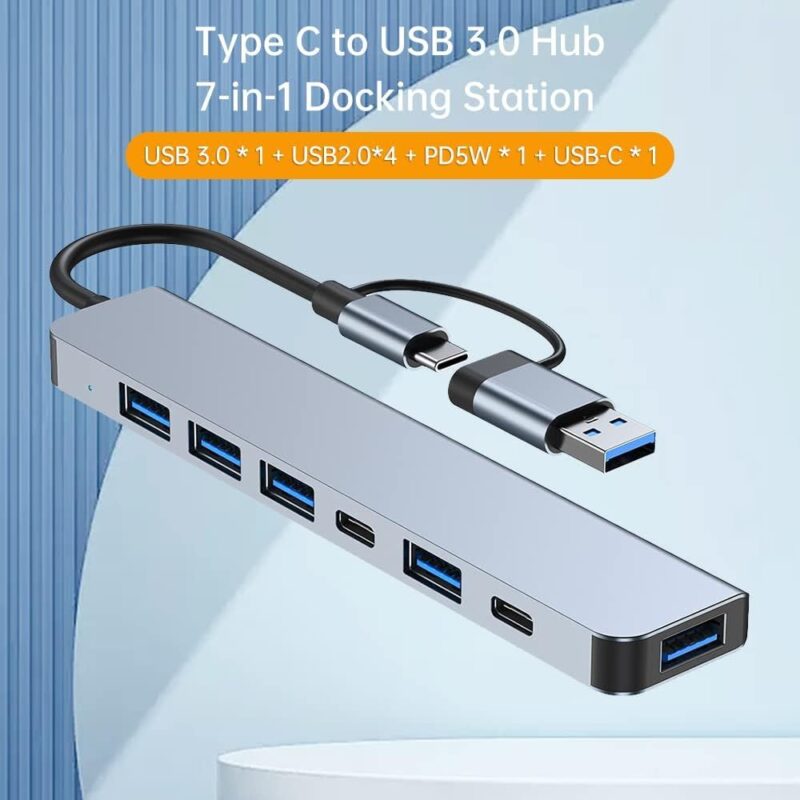1 × 7-in-1 USB Hub – USB 3.0 & USB-C Docking Station – GC
