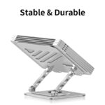 The 360° rotatable design supports devices between 11 to 15.6 inches, including laptops, tablets, and smartphones. Integrated silicone pads provide anti-slip protection, ensuring your devices stay safe and scratch-free.