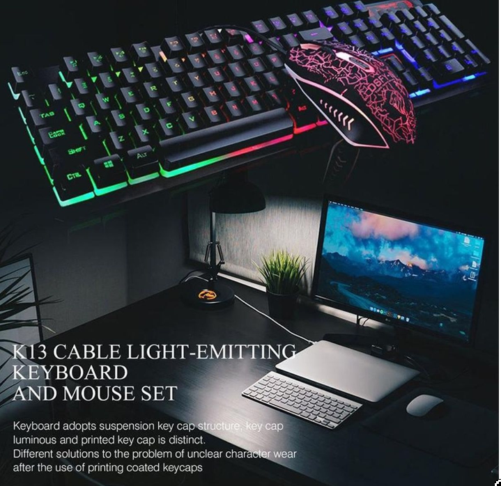 Level up your gaming setup with the GC Wired Gaming Keyboard and Mouse Combo, engineered for comfort, durability, and vibrant aesthetics. Featuring RGB LED backlighting, ergonomic design, and a full-size 104-key layout, this gaming combo is the perfect match for gamers and office users alike.
