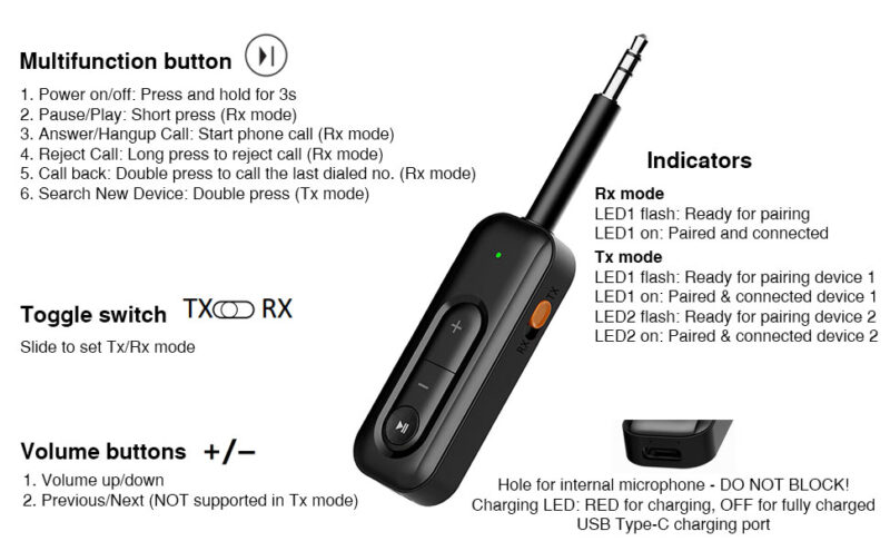 • 👥 Dual Connectivity – Stream audio to two Bluetooth devices simultaneously in TX mode