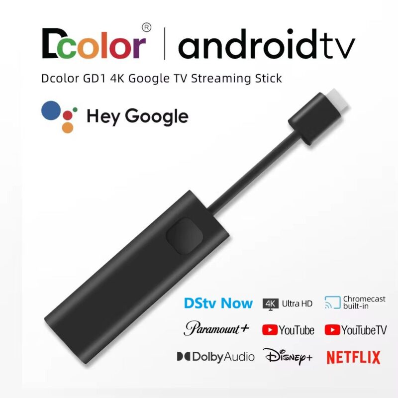 Transform your regular TV into a powerful smart TV with the DColor GD1-GC TV Stick – your all-in-one streaming solution for 4K Ultra HD content, voice control, and immersive audio-visual experiences. Fully Google and Netflix Certified, this device allows you to access 7,000+ apps from Google Play, including DStv Now, Showmax, Prime Video, YouTube, and Disney+, without any compatibility issues.