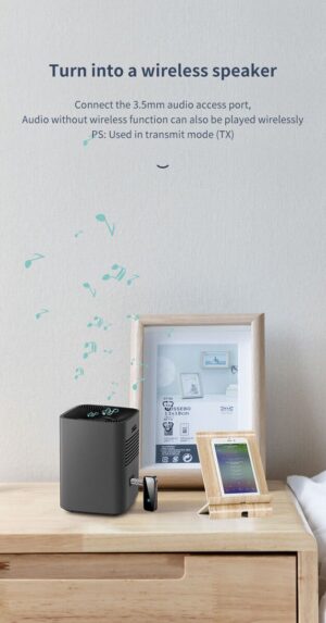 🔁 2-in-1 TX & RX Modes: Switch between Transmitter mode (TV to Bluetooth headphones) and Receiver mode (phone to AUX speaker).