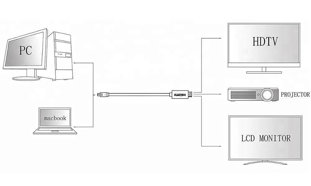 • Mini DisplayPort to HDMI: Converts Mini DP/Thunderbolt signal to HDMI, supporting both audio and video