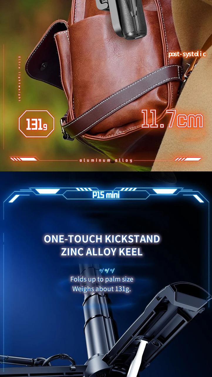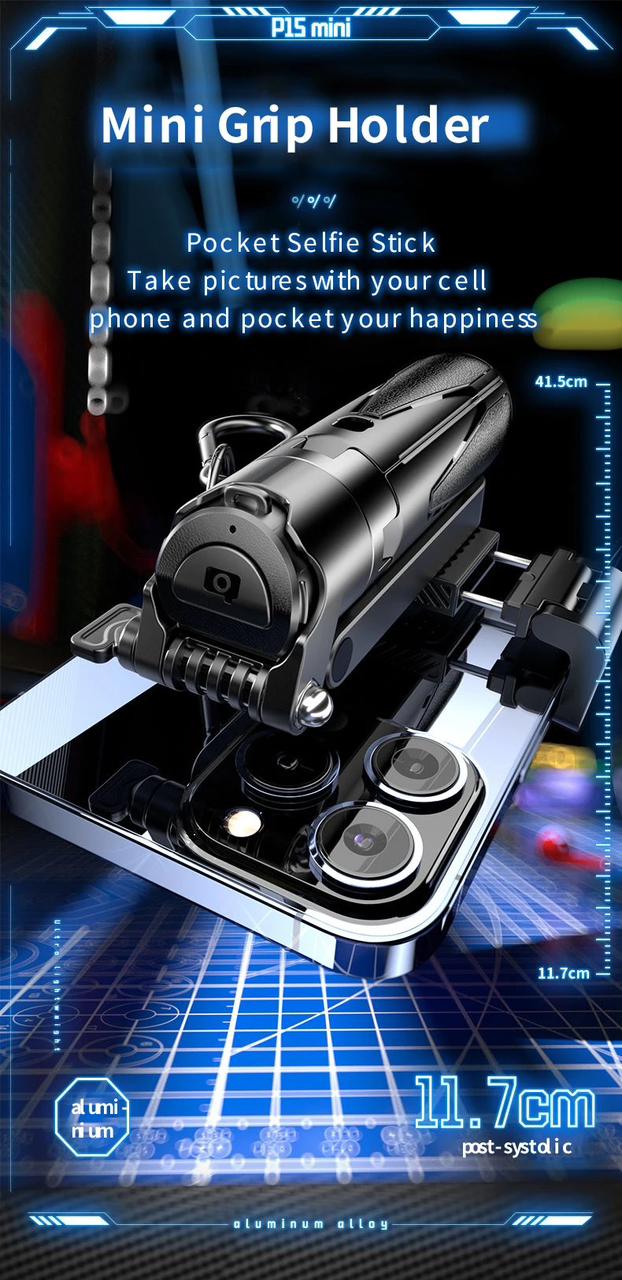Take your content creation to the next level with the P15 Mini Grip Quadrupod, a compact yet powerful selfie stick + tripod combo. Designed for ultimate portability, it fits in your pocket but extends to a full 41.5 cm for wide-angle group shots or stable tripod filming.