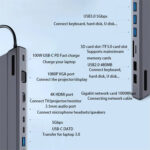 Multifunctional 14-in-1 Type-C Hub LAN+3Type-C+SD Card+USBx5+Audio+HDTV+VGA