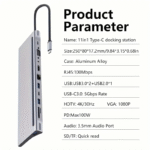 Expand your device’s capabilities with the Global Cellular PLK 11-in-1 Type-C Hub—a compact, high-performance adapter built for professionals, gamers, and creators. Transform a single USB-C port into 11 versatile connections, including 4K HDMI, VGA, USB 3.0, SD/TF card readers, Gigabit Ethernet (LAN), audio output, and PD charging — all in one sleek, premium aluminum design.