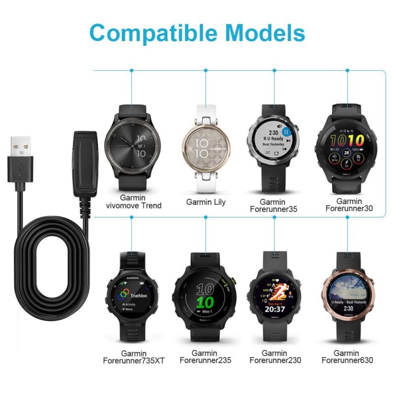 Keep your smartwatch powered up anytime, anywhere with this high-quality Smart Watch Charger designed for Garmin Forerunner, Approach, Vivomove HR, and more. Featuring a secure clip-and-plug design, it offers fast charging and stable data transfer while ensuring your device stays protected.