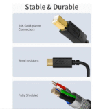 Type-C to USB-B Printer Cable – High-Speed USB-C to Printer/Scanner/MIDI Cable for Mac, Windows & More